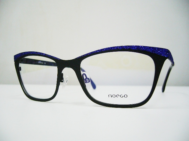 キラキラしてます!フレーム上部にブルーの細かなラメが装飾されたメガネ。