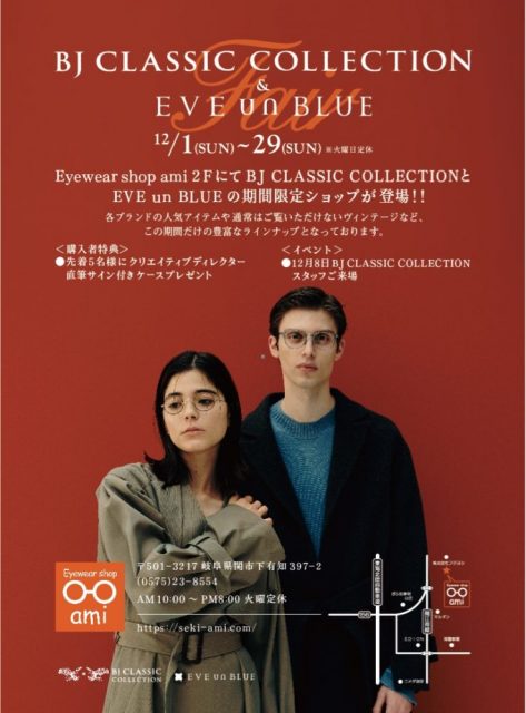 明日12月1日(日)より『BJ CLASSIC & EVE un BLUE』の期間限定ショップがオープン!!