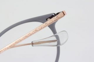 テンプルも細めのメタルパーツ。細かな彫金にも目が惹かれますね。