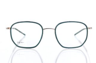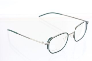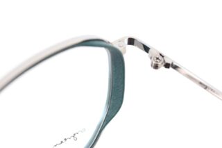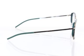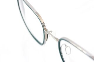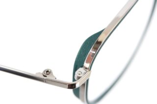 シックな輝きのグレーシルバーのメタルフレームに、グリーンのインナーリムがはめ込まれています。