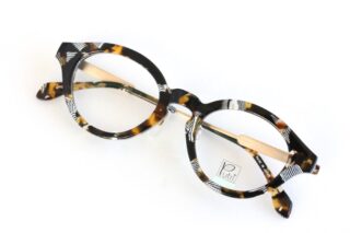 ベースとなるべっ甲柄に白と黒の幾何学的なラインが組み合わされ、まるで絵筆で描いたようなリズムが感じられます。