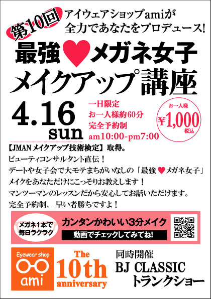 Eyewear shop ami 10周年を記念して開催するトランクショー期間中に同時開催します。