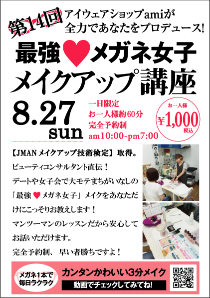 ※メイクアップ講座開催中もメガネ販売は通常通り行っております。