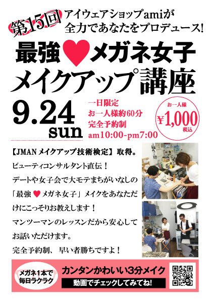 ※メイクアップ講座開催中もメガネ販売は通常通り行っております。