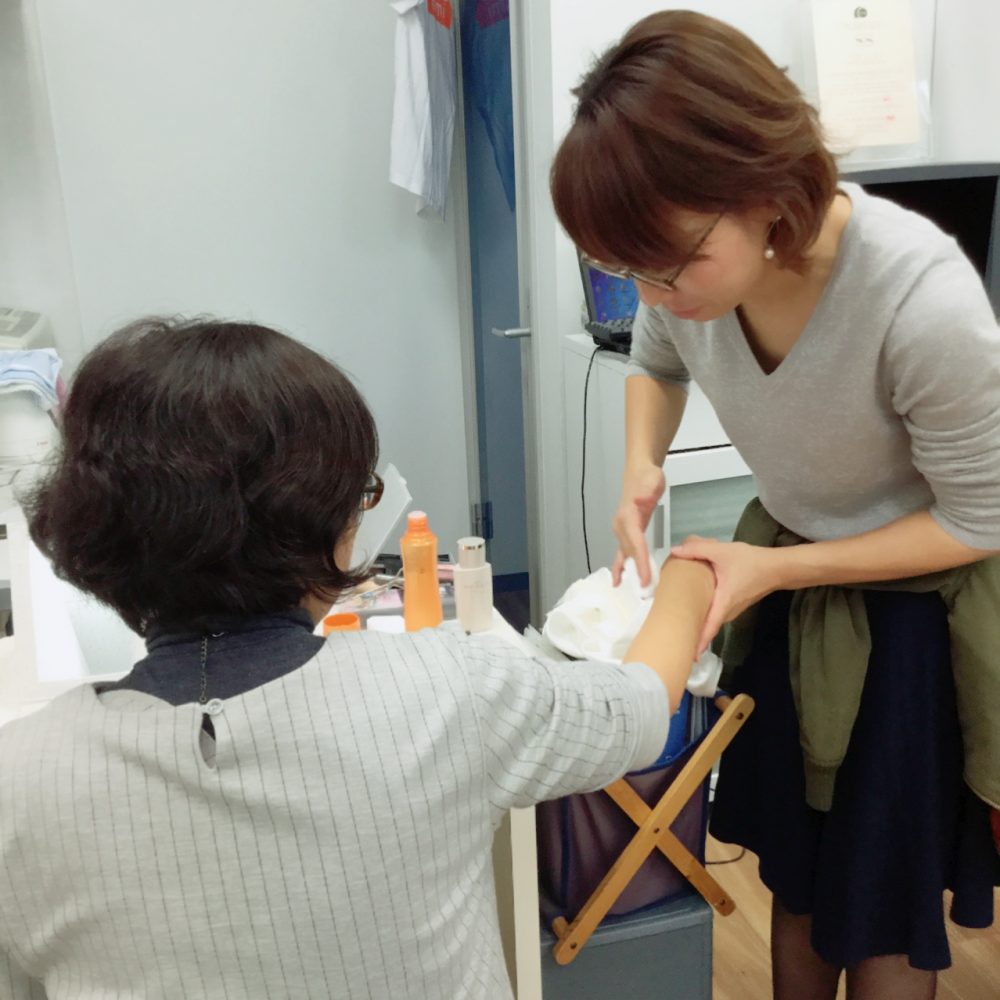 先生がオススメする基礎化粧品を使った体験。
