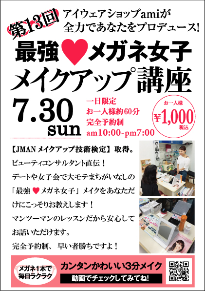 ※メイクアップ講座開催中もメガネ販売は通常通り行ってます。