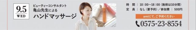 ③ 9月5日(水)開催『亀山先生によるハンドマッサージ』