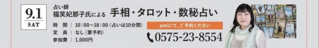 ① 9月1日(土)開催『手相・タロット・数秘術占い』