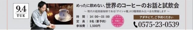 ② 9月4日(火)開催『めったに飲めない、世界のコーヒーのお話と試飲会』
