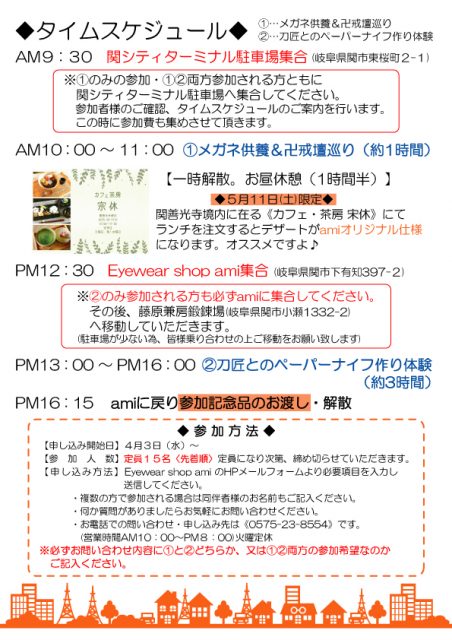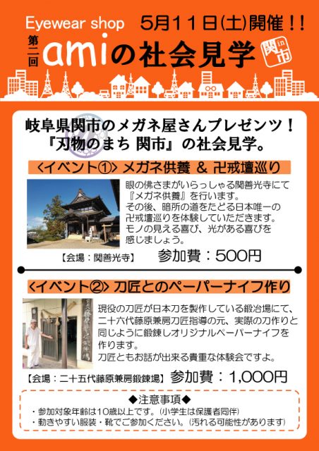 5月11日(土) 第2回 Eyewear shop ami の社会見学を開催します!
