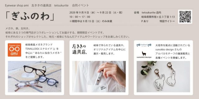 9月9日(水)~22日(火・祝)まで期間限定コラボイベント『ぎふのわ』をTetsukurite店舗にて開催いたします。※9月15日(火)のみ休業。