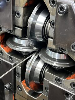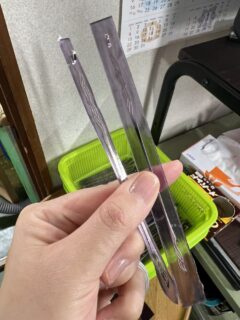 円柱のメタル芯をリム(レンズをはめる枠)の形に成形していきます。