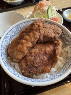 お昼は元祖ソースカツ丼のお店、ヨーロッパ軒へ。スタッフは浜田社長オススメのエビ・カツ・ミンチのトリオ丼を。