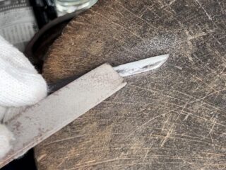 それぞれイメージするペーパーナイフの形が作れたら、次は棒ヤスリを使って表面の磨きと刃を付ける作業です。実は鍛造作業よりもこちらの方がキツイ。