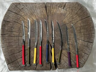 持ち手には糸を巻き、刀文もついています。作り手の個性がしっかりと活きた作品達ですね。
