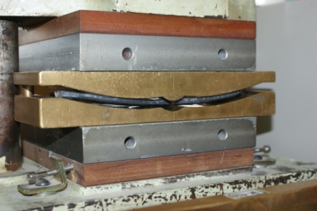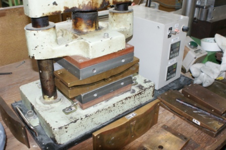 これに熱を加えた金型でゆっくりとプレスして、カーブをつけていくわけです。