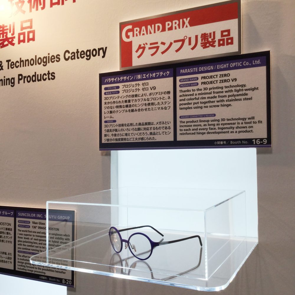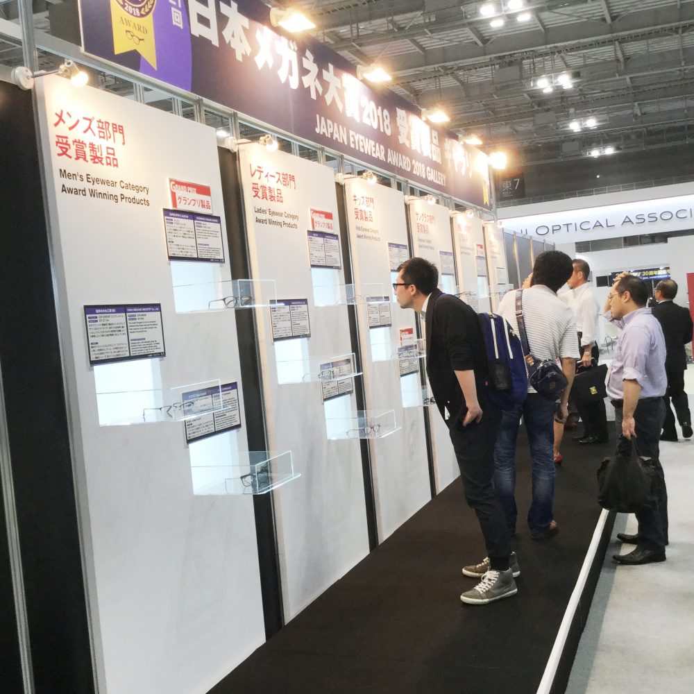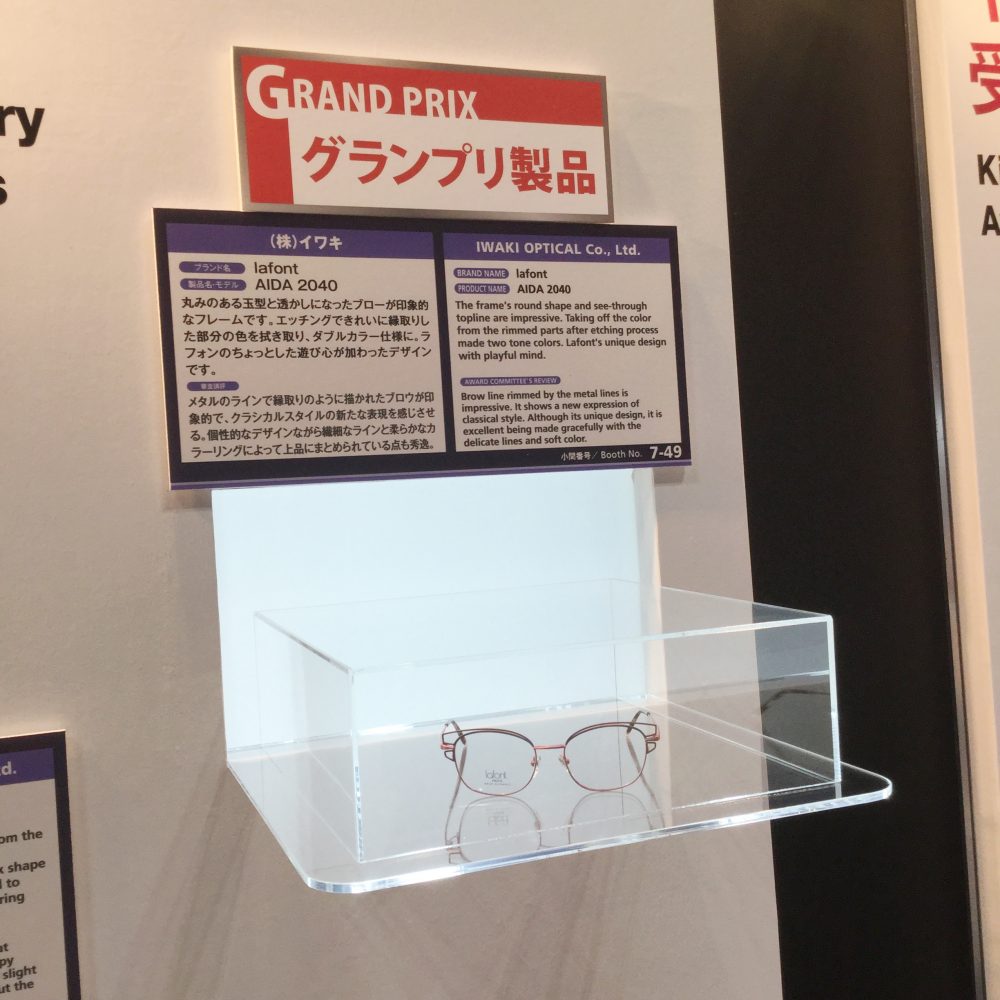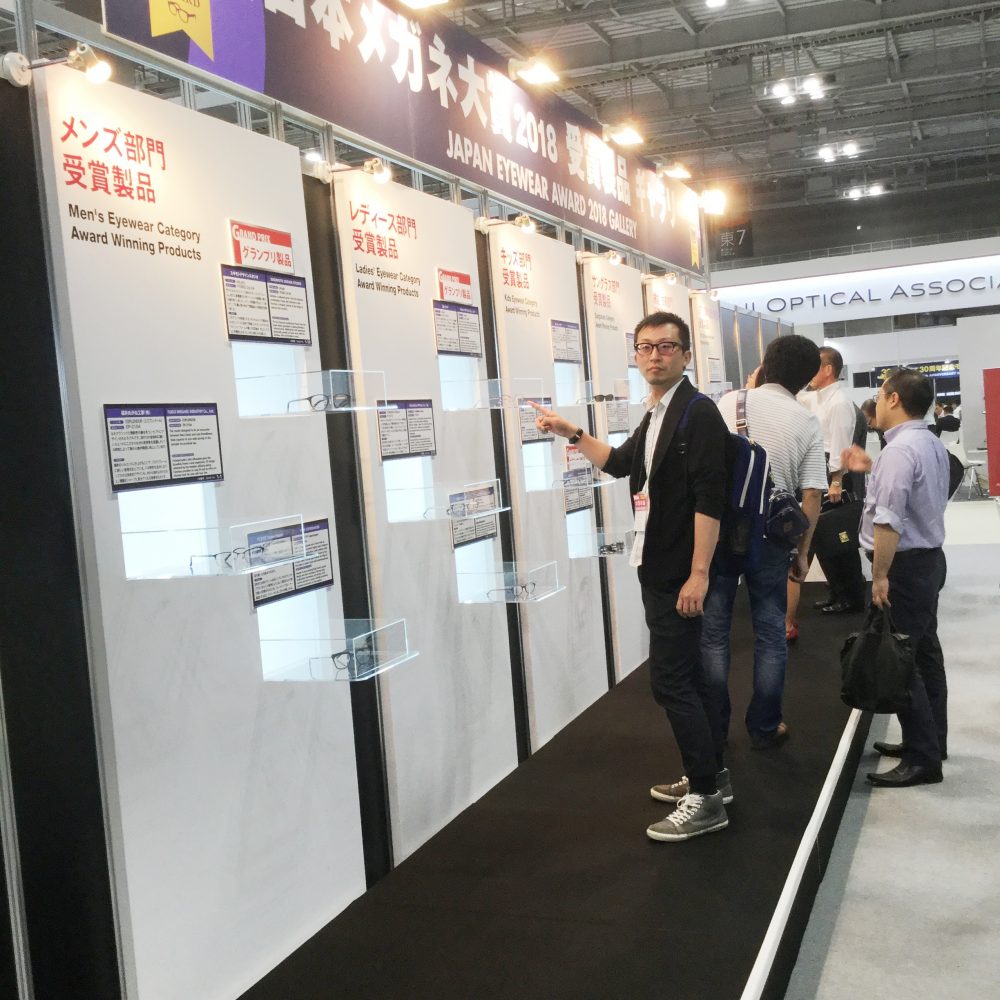 受賞したメガネが展示されているブースも見てきました。オーナー何か見つけたみたいですね。