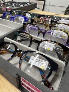 目を惹く色鮮やかなフレームが多数ありました。スタッフの独断で仕入れたフレームも数点。
