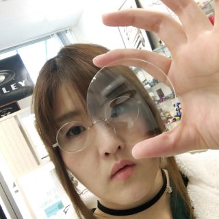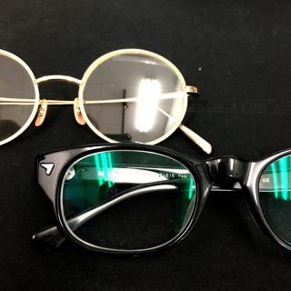 スタッフの私物メガネです。上が度無しのクリアレンズ、下が度付きのレンズです。