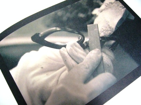 しかし、100%機械だけでは良い眼鏡は出来ないのです。写真のように、職人さんの手によってさらにワンランク上のメガネが仕上がるのです。