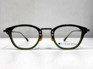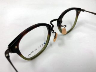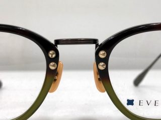 上下2色に分かれたツートンカラー。このフレームのグリーンは鶯色に近く日本人の肌に馴染みやすいグリーンです。気品のあるカラーですね。