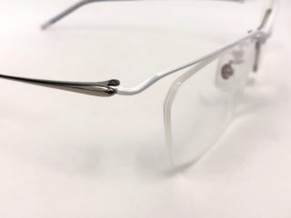 白いフレームって何故か惹かれてしまいますよね。白自体はメガネとしてお顔に乗せると結構目立つカラーなのですが、このフレームは線が細いので悪目立ちするすることは有りません。