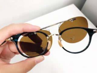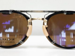 レンズを下ろしていればサングラス仕様。跳ね上げればメガネとなりクリアレンズの状態になります。