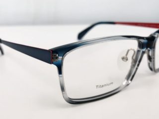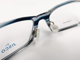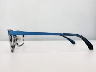 テンプルはマットブルーのチタニウム素材。比較的軽めなフレームです。