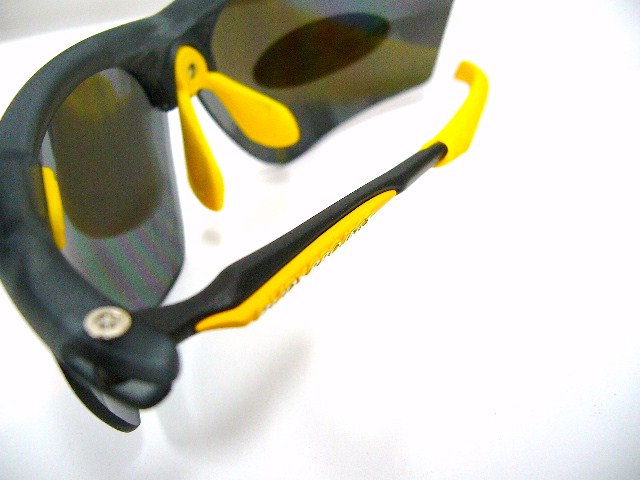マットグレーのフレームです。そして蛍光イエローのノーズピースとテンプルがカッコイイですよね。