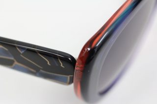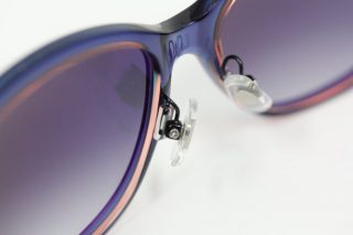 テンプルカラーが少し個性的。太さもあるので横からの光も入りにくくなっていますよ。