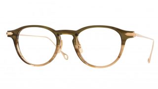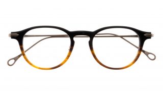 正面から見た時のフレームのボリュームに対して、横顔は細いメタルテンプルでスッキリとした印象に見せます。