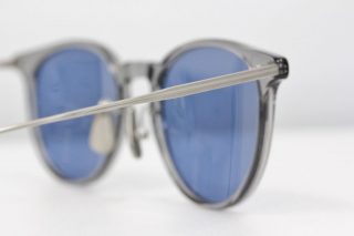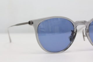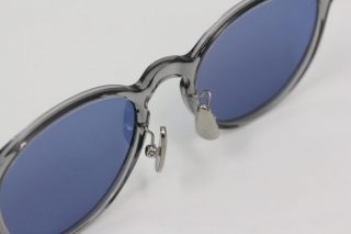 キャットアイっぽさも感じるボストンフレーム。通常のメガネフレームに比べればやや大きめですが、透明感のあるグレーフレームがサイズに対する重い印象をグッと抑えてくれます。