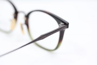 やや濃いめの茶色から鶯色に変化するフレームカラー。和色なので私たち日本人のお顔に馴染みやすいカラーですね。どことなく気品すら感じます。