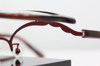 正面のフロントパーツを上げるとワインカラーのメタル枠が見えます。