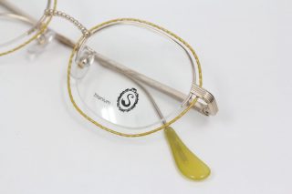 前回ご紹介したのはオーバル型の二重リムフレームでしたが、今回はレンズの形がクラウンパント(王冠型)っぽい六角形になっています。