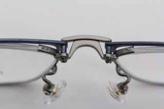テンプルに繋がるフロントパーツはチタン製で柔軟性があるため、かけ心地がよく、また構造的にレンズに負担がかかりにくいのもポイントです。