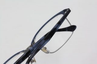 テンプルカラーは黒を含んだブルー系のデミ柄。