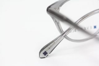 テンプルエンドに入っているブルーのブランドロゴマーク、さりげなくも映えます。
