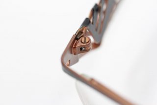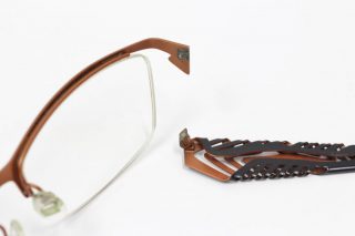 お店に届いたフレームを見てみると、フロントとテンプルを繋ぐパーツの溶接が外れていました。