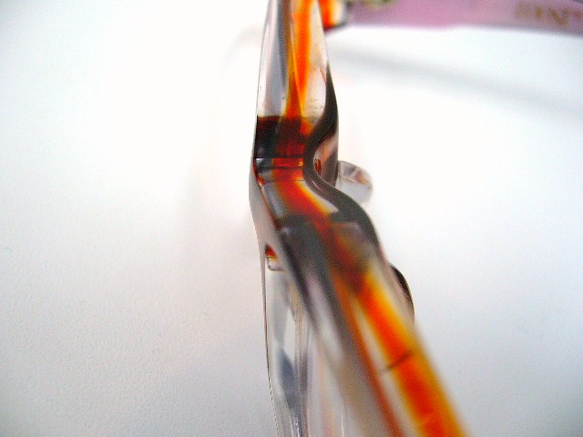 想像以上 その他の商品 LOOSE 040 ¥27,300 (税込) 投稿日| 2008.11.22 LOOSE NO.040 COL.9です。 真正面からはややオレンジかかったブラウンのカラーで女性の方にも合わせやすいカラー。もちろん男性がちょっとファッションアイテムとしてカラーを足していただくっていう使い方もありです。 この幾重にも重なった生地が色に深みや奥行き感を持たせてくれるわけです。 テンプルもいいカラーです。パープルかかったグレーの内側なピンクがいいアクセント。 立体的なエッジング加工が特徴のモデルですので、このななめ45度がより栄えます。 そしてフロントのカラーの深みも感じていただけますよね。