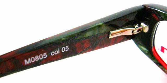 智元(フロント端とテンプルの境目)部分には下から上へななめに黒いセルが張り合わされており、斜め45度方向からの印象を良くし、さらにもう1つとっておきの効果があります。