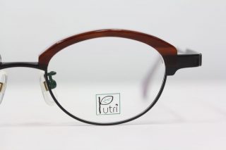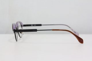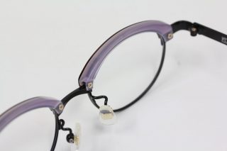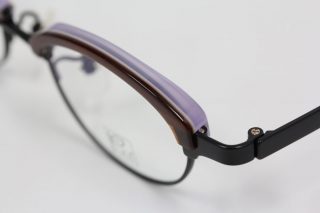 メタル部分はブラック。レンズ上部、ブロウ部分の生地正面はブラウンですが裏面は柔らかなミルキーパープル。