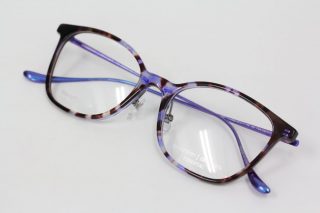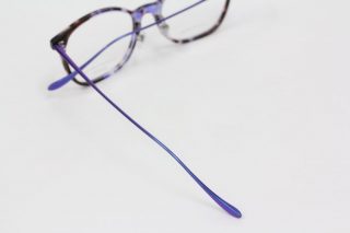テンプルも細め、角度によって色味が変わるちょっと変わった塗装もポイントです。