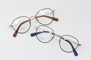 女性の肌により馴染みやすいピンクゴールド、レンズ周りのネイビーは眼の印象をグッと引き立ててくれます。