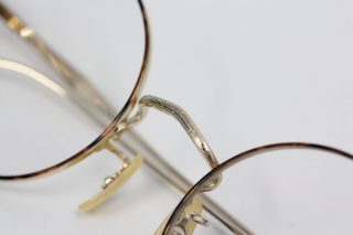 レンズ周りにべっ甲塗装が施されえた正統派丸眼鏡。
