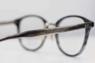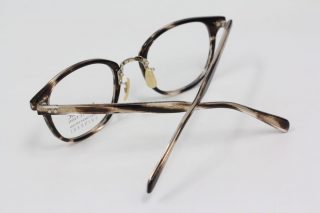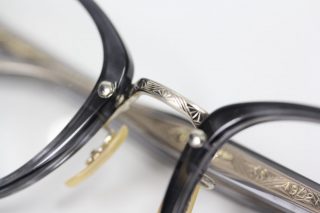 ブリッジのメタルパーツはテンプルの芯張りと同柄で統一感を。