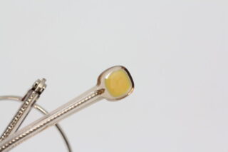 ワイヤーの様なテンプル芯はクリアピーチカラーのプラスチックに覆われています。