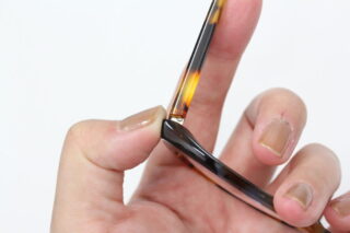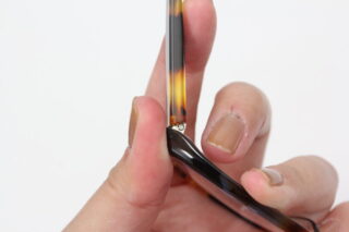 テンプルにはミクリ蝶番と呼ばれる弾性のあるバネ蝶番が採用。
