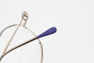 左側のテンプル先には越前漆器職人の手塗によるブルーのポイントカラーが施されています。