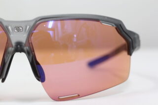 レンズカラーは名前の通りサイクリングに適したコパー系カラー、表にはブルーミラーが施されています。